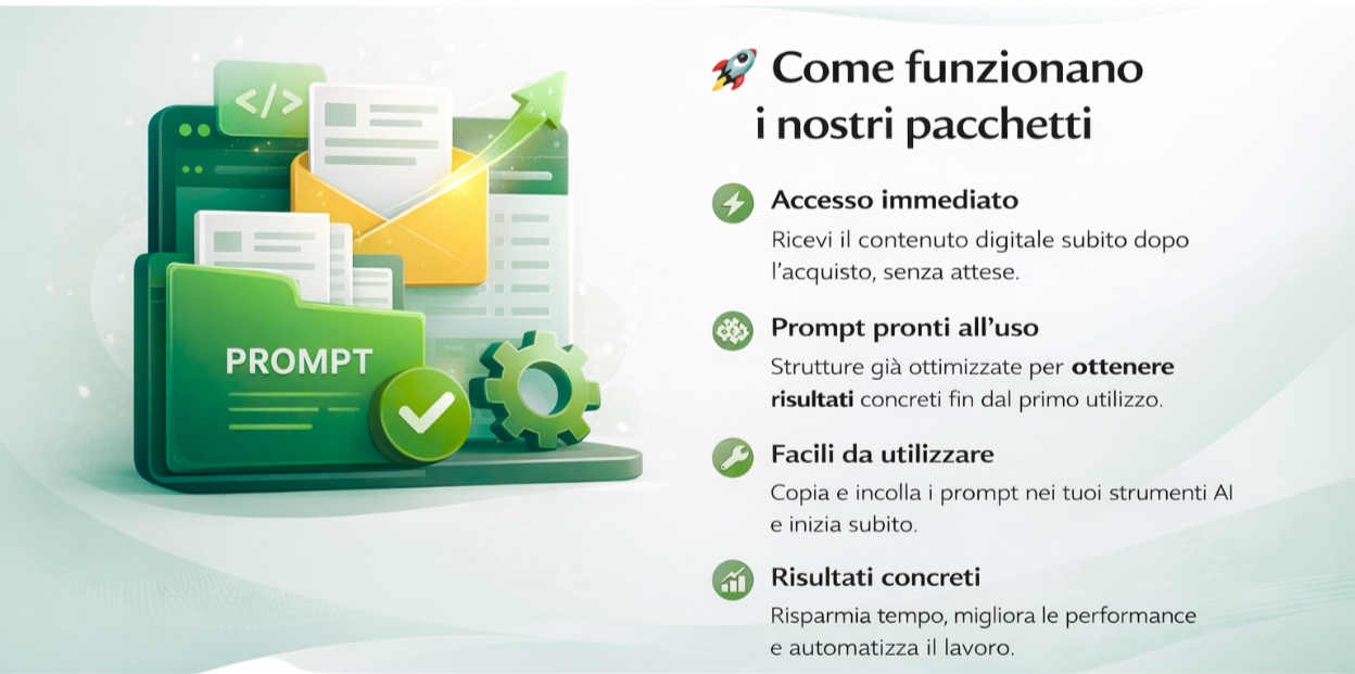 Ottieni prompt professionali pronti all’uso progettati per creare email, preventivi e comunicazioni tecniche in modo rapido, preciso e professionale. Migliora il rapporto con il cliente, aumenta la chiarezza delle proposte e ottimizza i tempi di gestione delle richieste.